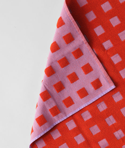 Squares Lilac/Warm Red Cotton Tea Towel