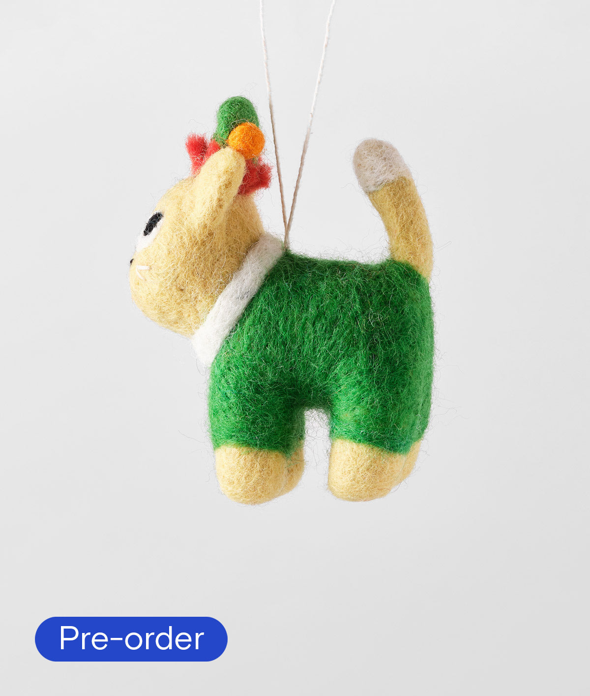 Cute, cuddly, and Christmassy, our hanging tree decorations are back. Designed by long-term Wrap collaborator Elliot Kruszynski these charismatic kitties sport woolly jumpers, peep out of Christmas stockings, or just stand there looking fabulous. Ethically produced in collaboration with a Nepalese development project with 100% fairtrade materials, these felted friends are handcrafted by expert local craftswomen.
