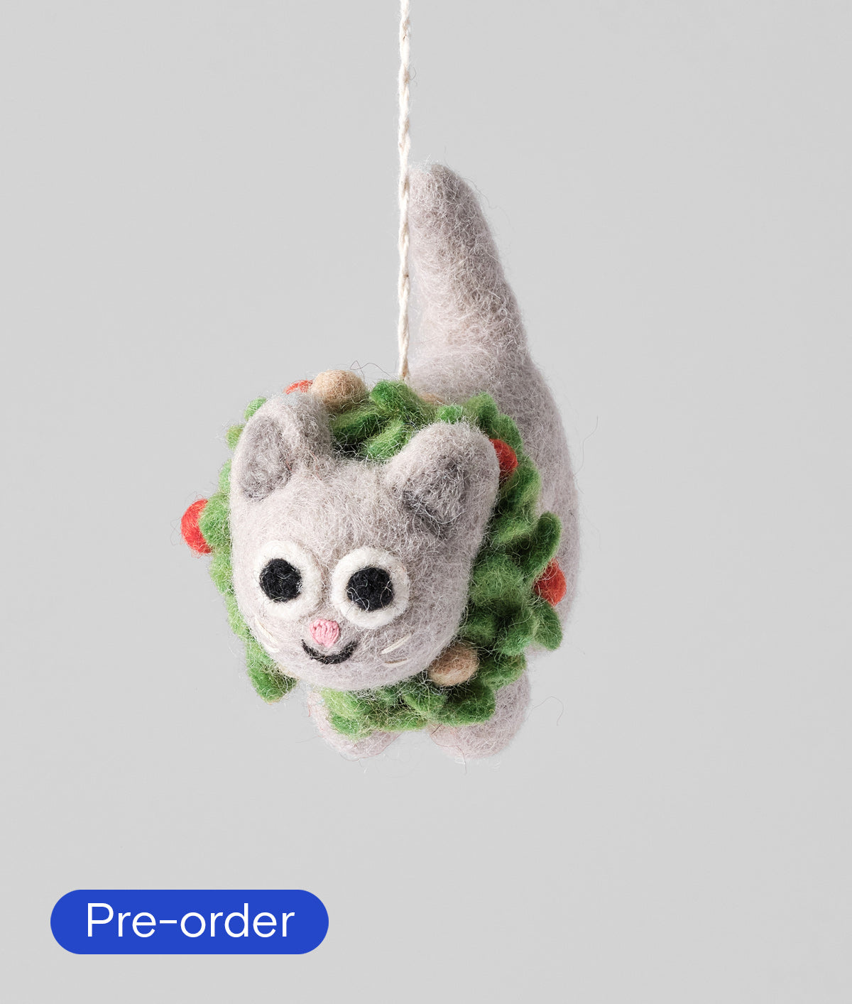 Cute, cuddly, and Christmassy, our hanging tree decorations are back. Designed by long-term Wrap collaborator Elliot Kruszynski these charismatic kitties sport woolly jumpers, peep out of Christmas stockings, or just stand there looking fabulous. Ethically produced in collaboration with a Nepalese development project with 100% fairtrade materials, these felted friends are handcrafted by expert local craftswomen.