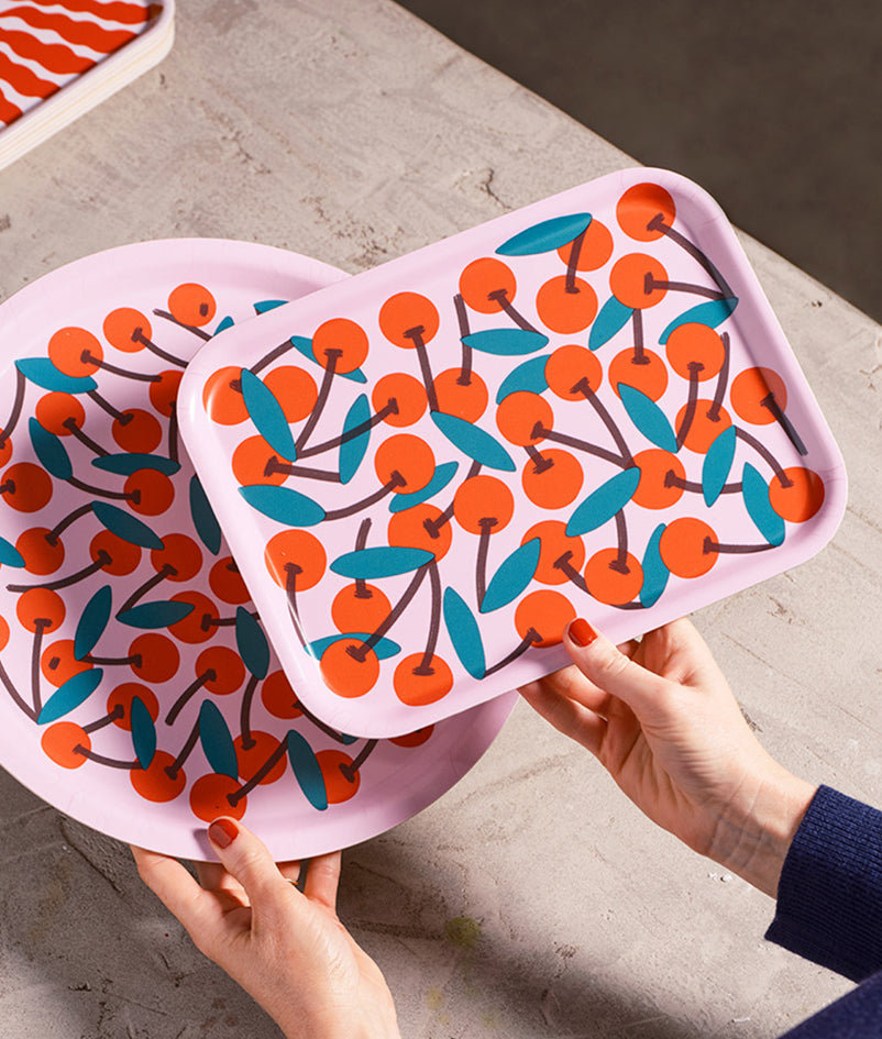 Cherries Pink Mini Rectangle Birch Serving Tray