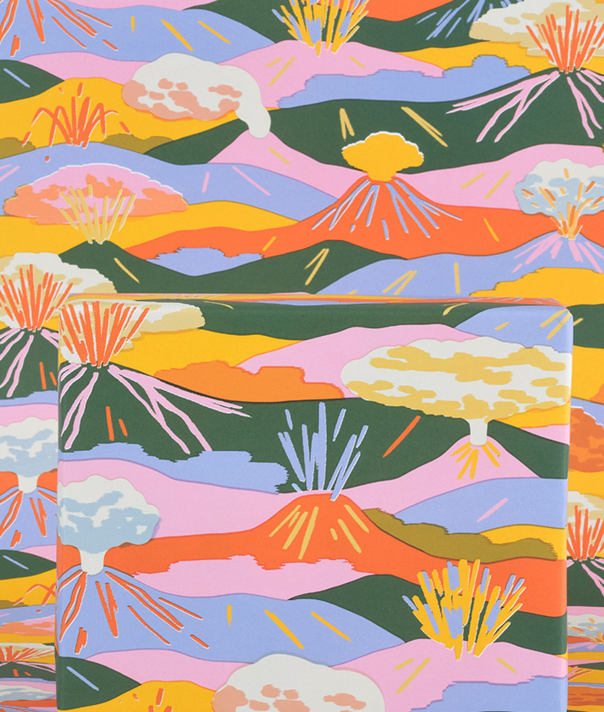 This volcano-covered gift wrap is an explosion of bright colour. Eye-catching and beautifully unusual, this wrapping paper design is sure to stand out.