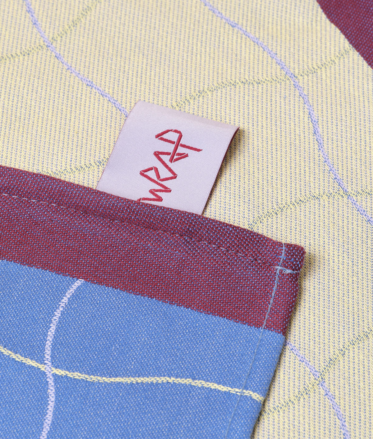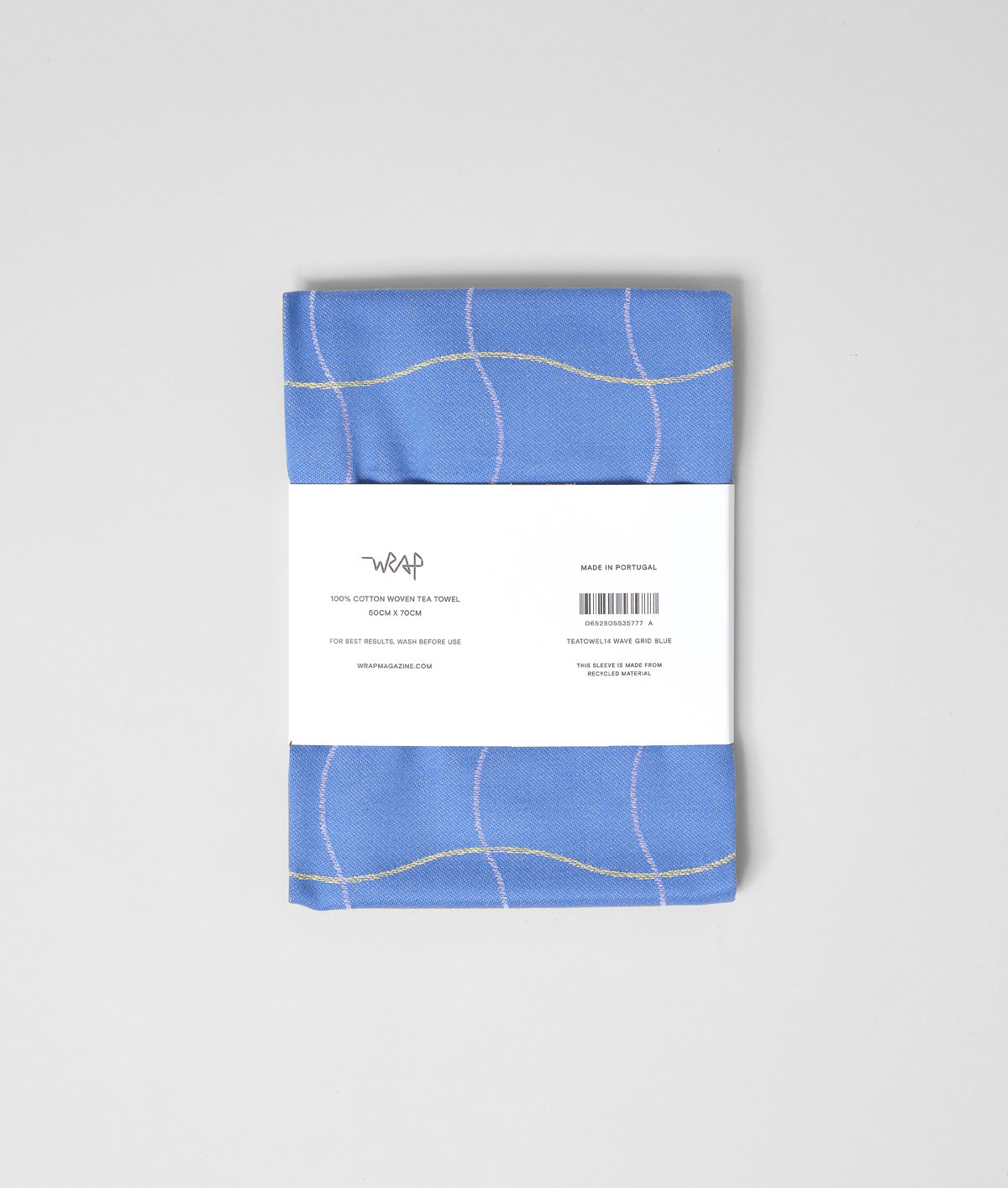 Our new blue wavy grid design was created by the Wrap studio team and woven from 100% cotton.